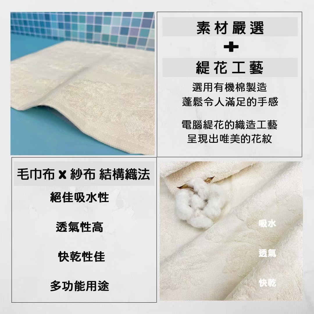 有機棉紗布緹花毛巾(組合)